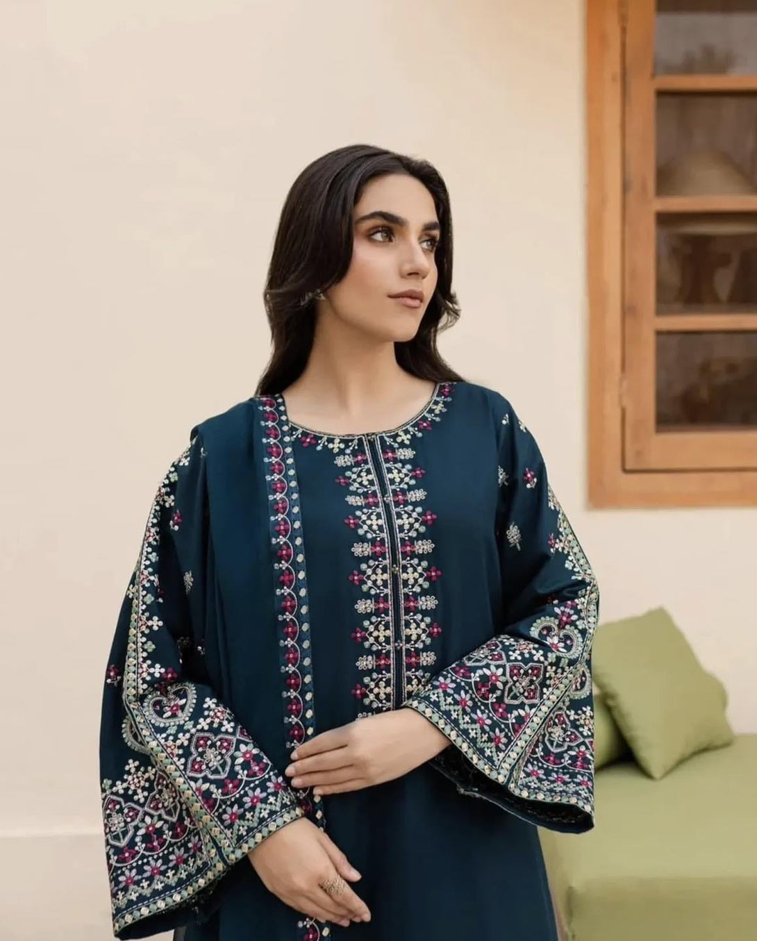 Experience luxury with our Mashal Embroidered 3PC suit, crafted from premium pure lawn fabric. This exquisite ensemble features intricate embroidery on the shirt, trouser, and dupatta.
